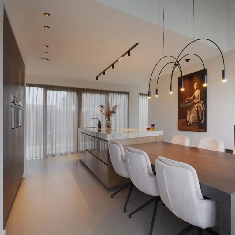 Naast het Verometal is het keukenblad ook een echte blikvanger. Het blad is van het merk Dekton en is bij het spoelgedeelte extra opgedikt om een speciale look te geven.