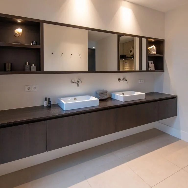 Stijlvolle handgemaakte keuken. De combinatie tussen donker eiken en het prachtige Dekton Stonika Bergen werkblad maakt deze keuken een echte eyecatcher! Het Dekton werkblad is geïnspireerd op het natuurlijke Portobello steen. Mooie licht grijze en witte aders met een hoogglans afwerking. Verder is deze maatwerk keuken voorzien van luxe snufjes zoals het Blum servo drive systeem. Dit systeem is bijvoorbeeld in te bouwen in een koelkast of vrieskast. Door op de deur te drukken wordt deze elektrisch geopend dus heb je geen handgrepen meer nodig. Benieuwd wat wij nog meer in deze woning gerealiseerd hebben? Bekijk het hier.